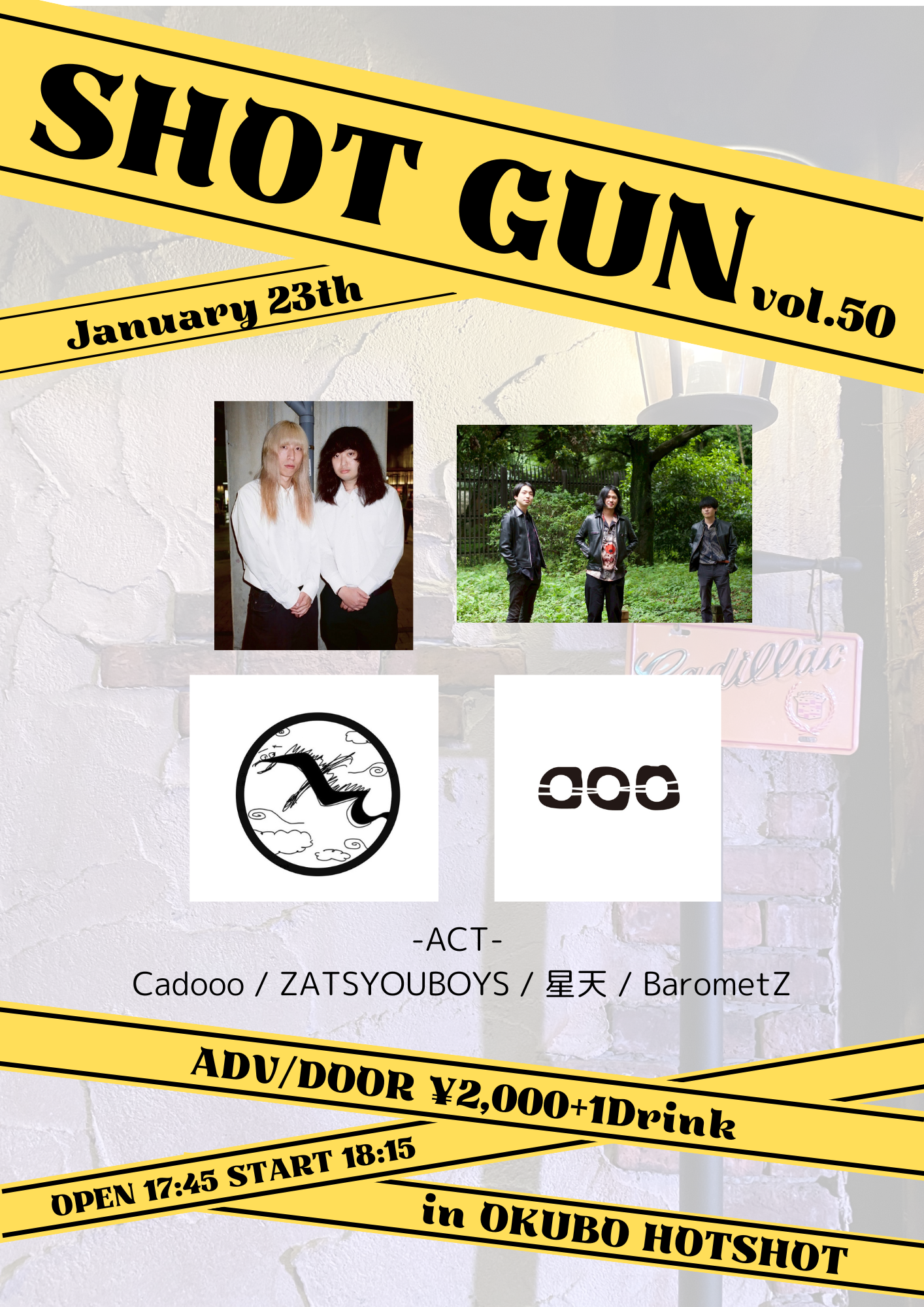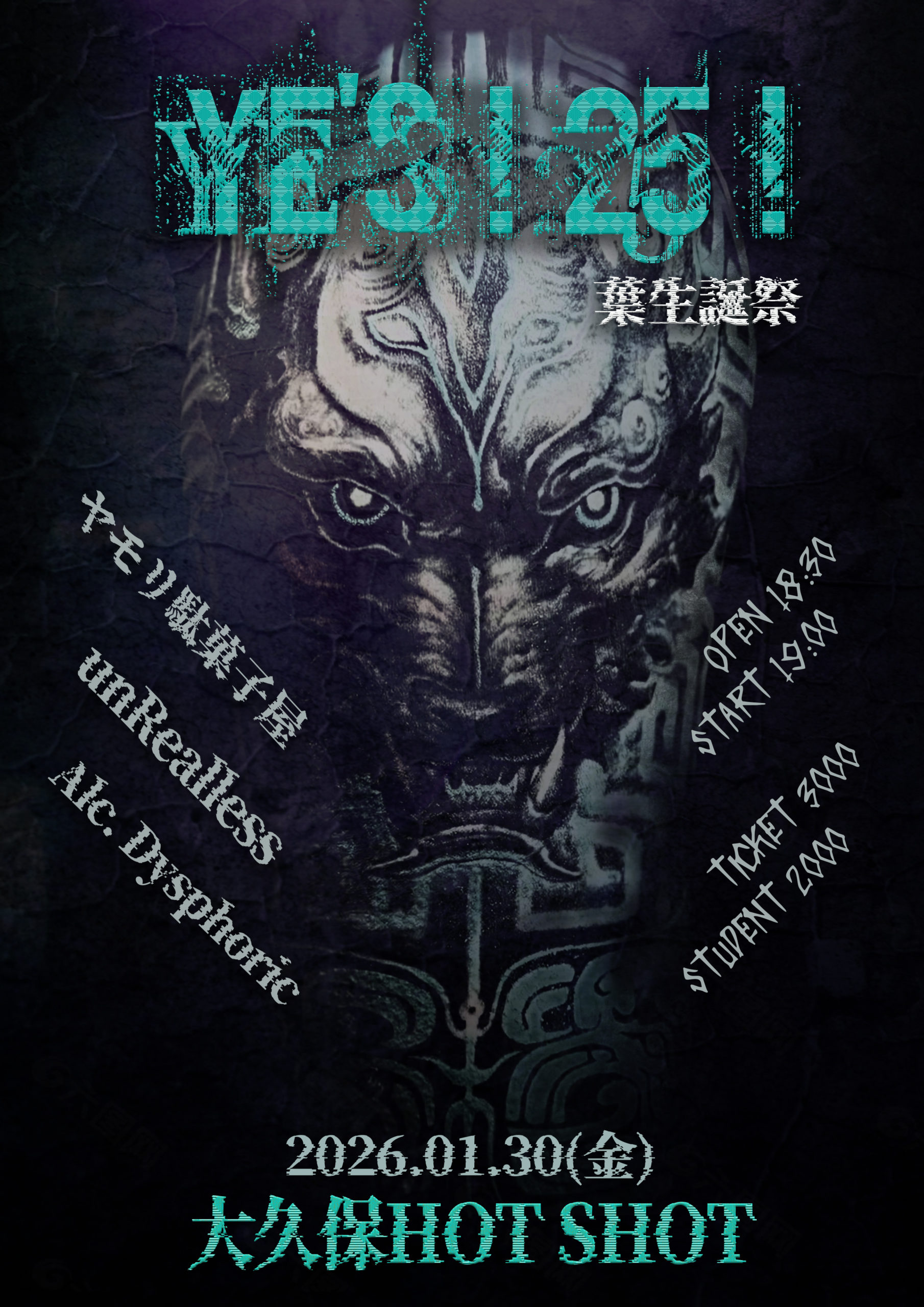 Open 17:15/Start 17:35 【ACT】 わくらいふばらんす/ayu/トンプソンかんた/The よわむしーず/スーパーマンK/環七 【Ticket】 ADV ¥2,400/Door ¥3,000